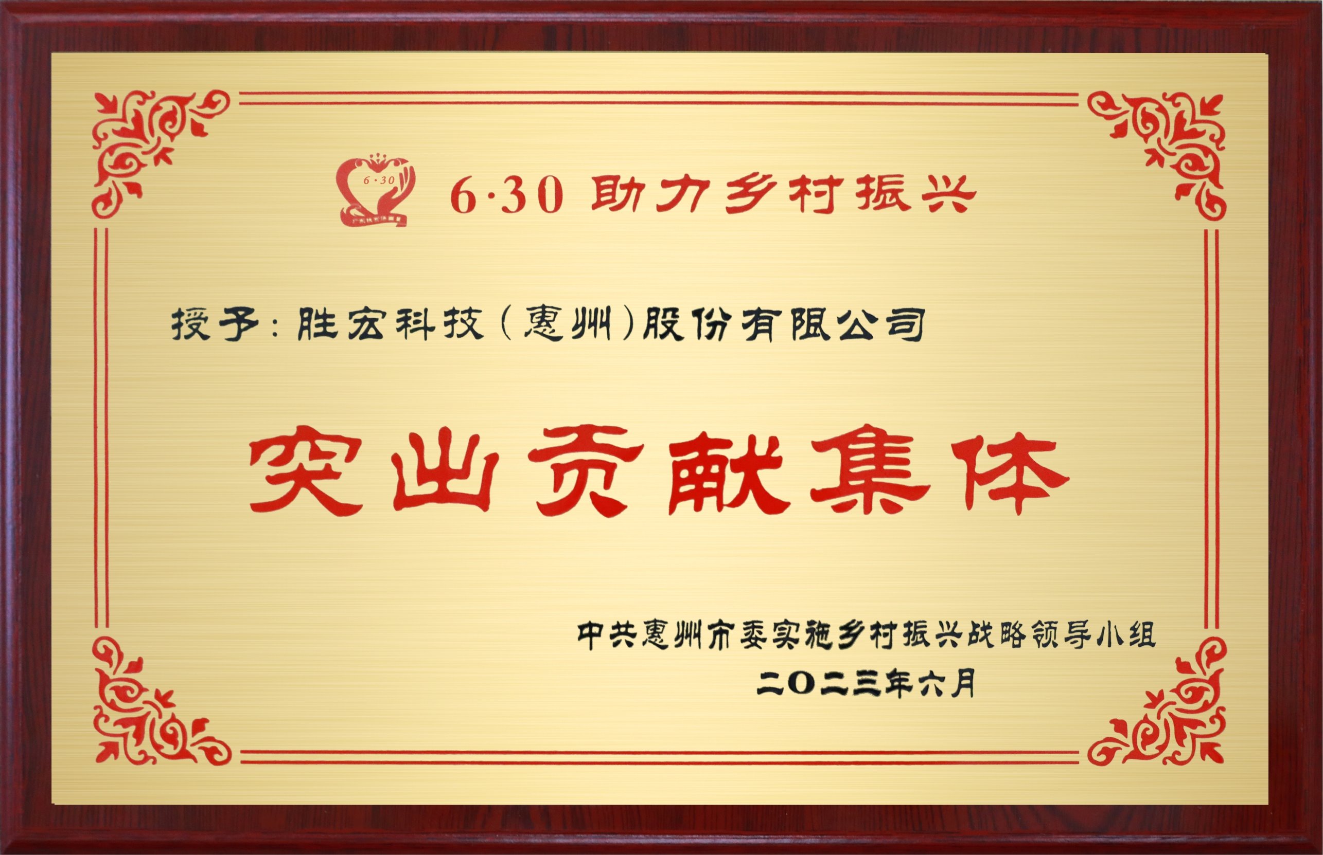 榮獲惠州市鄉村振興“突出貢獻集體”